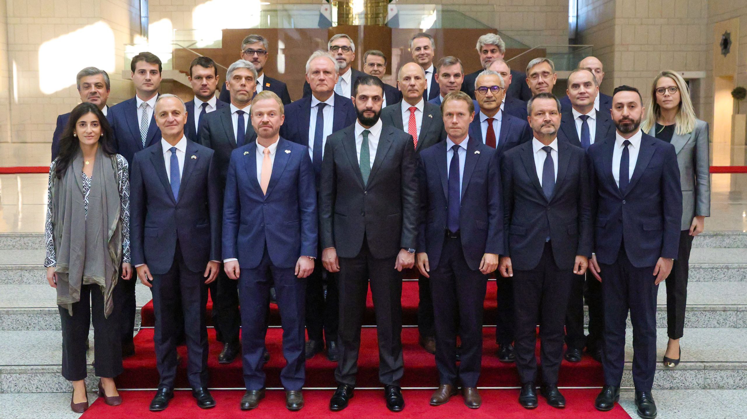 استقبل الرئيس الانتقالي أحمد الشرع، اليوم في قصر الشعب بدمشق، وفداً من رجال الأعمال والمستثمرين الفرنسيين، حيث تناول اللقاء آفاق تعزيز التعاون بين سوريا وفرنسا في مجالات الطاقة والطيران والسياحة والتحول الرقمي وإدارة الموارد، إلى جانب قطاعات حيوية أخرى تشكّل ركيزة لمسار التنمية الاقتصادية.